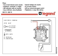Plexo samenstelbare wisselschakelaar met verklikker - zonder nulleider - grijs - 6 AX - 60 W minimum - 1500 W maximum - met steekklemmen