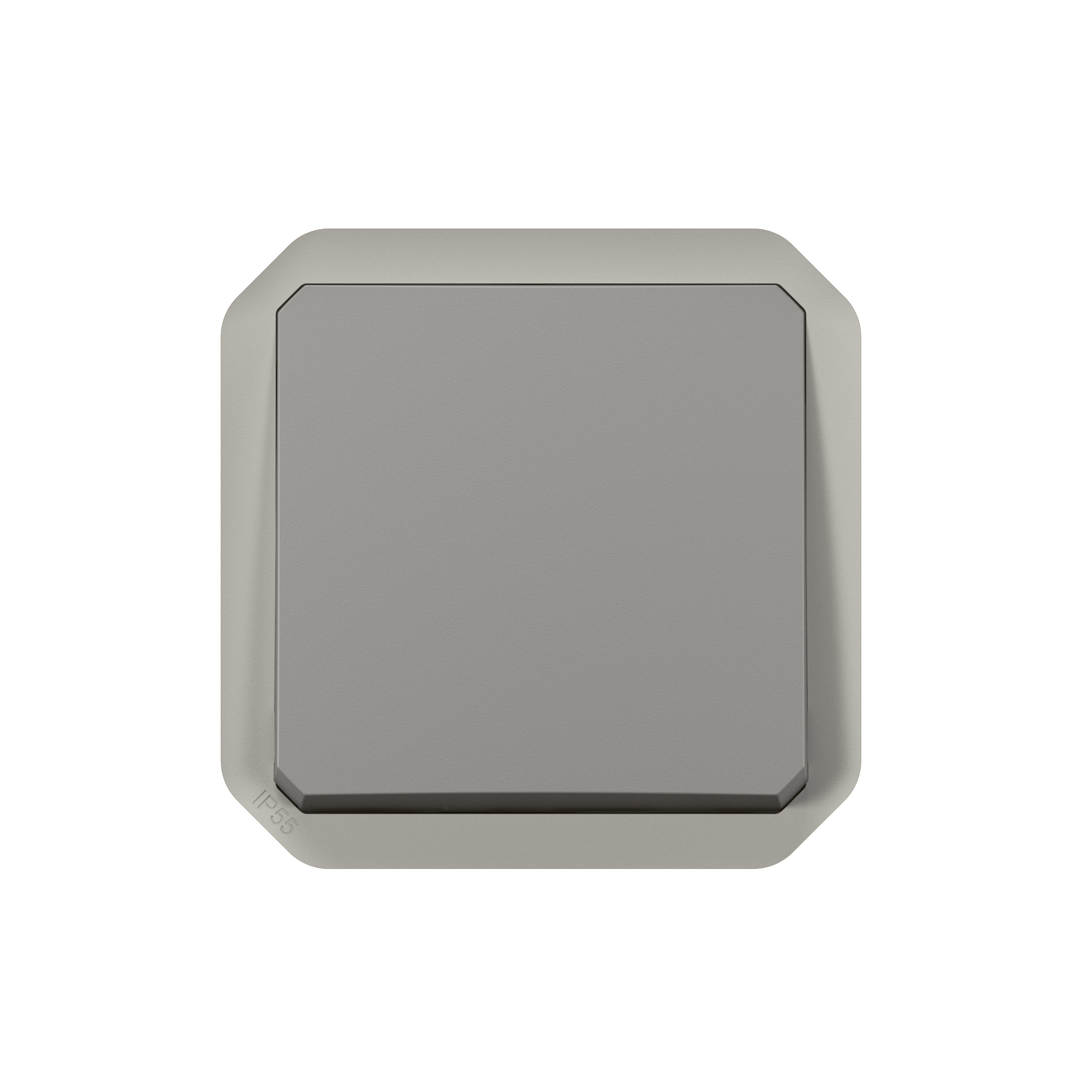 Plexo interrupteur inverseur - 10AX - 250V - livré sans boîte de montage en surface ou cadre encastré - IP55 IK07 - gris