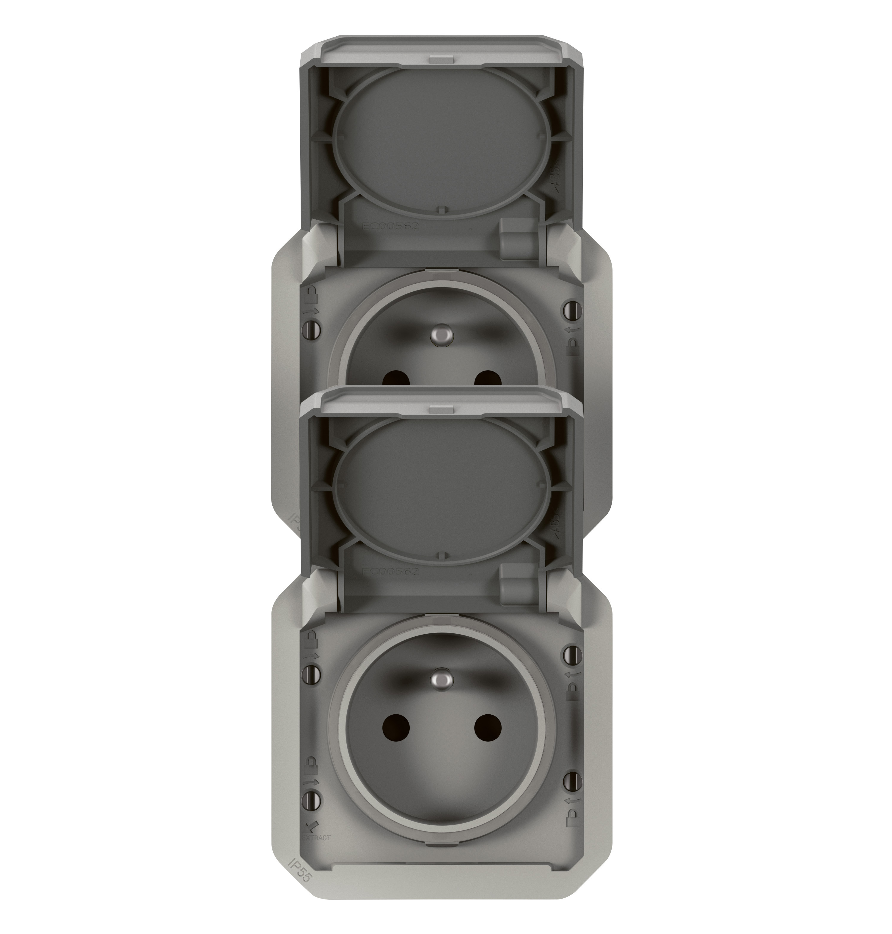 - Description de facturation Plexo prise 2x2P+T vertical mécanisme IP55 IK08 gris
