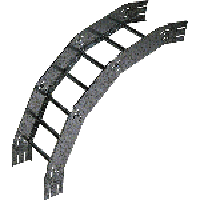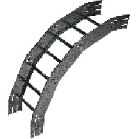 Raccord de montée/descente pour échelle à câbles GLO-4 - sendzimir - hauteur 100 mm - largeur 300 mm - légère - rayon d'environ 500 mm - réglable jusqu'à 90° - ouverture des échelons vers le haut - insertion des brides de montage dans les profils latéraux de l'échelle à câbles - fixation avec 8 ensembles M6 x 10 mm réfs. 8200100+8200200