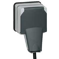 Plexo 66 composable prise 2P + T avec volet IP 66 fiche engagée - avec sécurité - 10/16 A - 250 V - IP 66 - IK 08 - gris - équipée du système "lock 66"