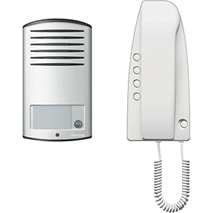 Kit audiokit avec poste de rue Linea 2000 couleur aluminium - avec 1 bouton d'appel - avec poste intérieur Sprint blanc