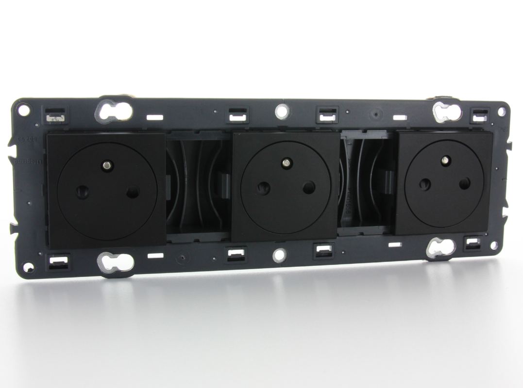 Valena Next prise 3x2P+T précâblée aff appareil complet noir à vis