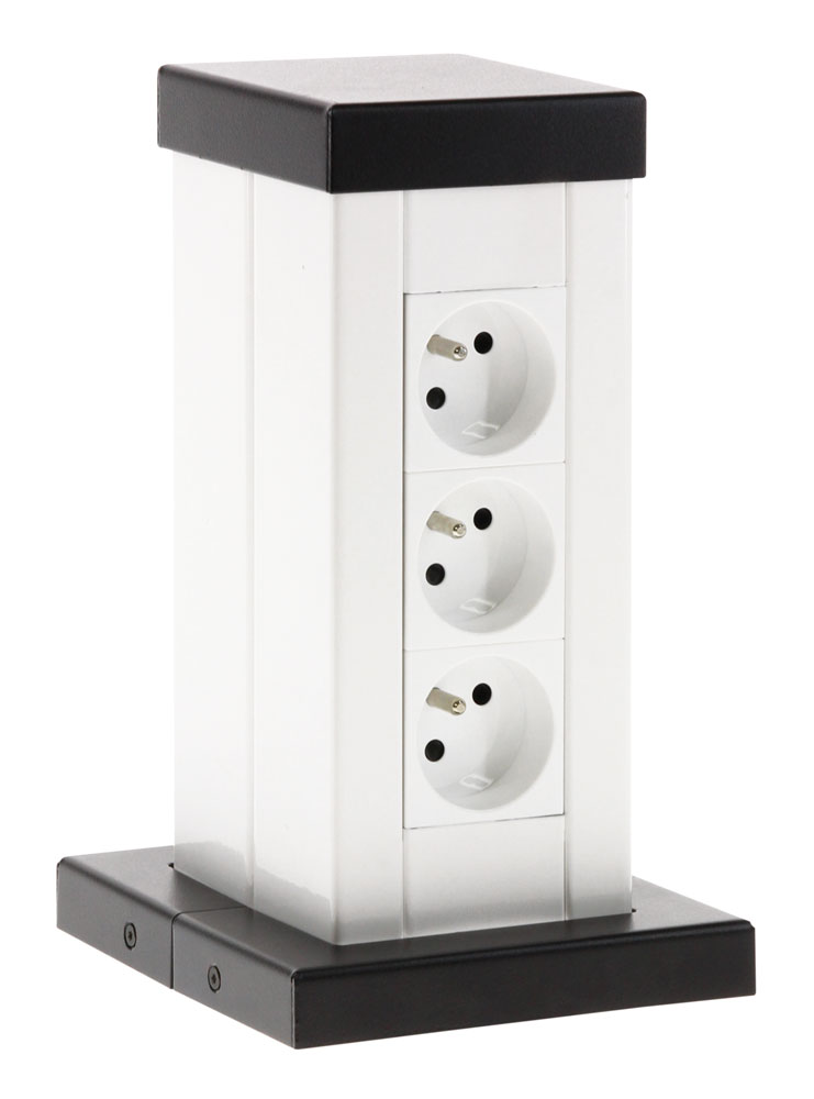 Colonnette CL-SO acier Click-in double 85x50mm L225 mm avec 1x3v wcd pinthing, 2x2v RJ45 UTP CAT6 et couvercles RAL 9003