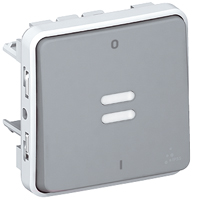 Plexo samenstelbare tweepolige schakelaar met verklikker - 10 AX - 250 V - grijs - IP 55 - IK 07 - met steekklemmen - mechanisme geleverd met sierplaat