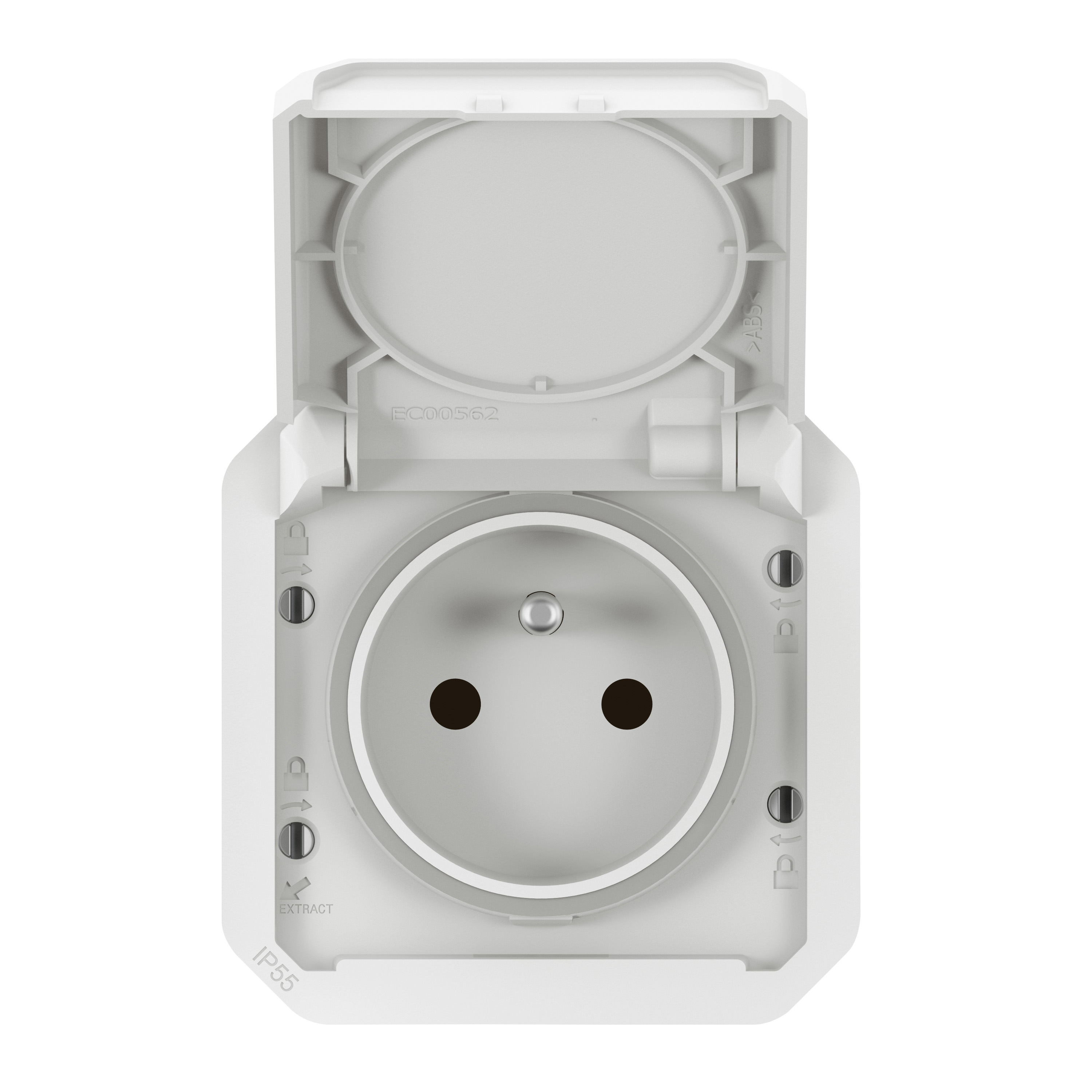 Plexo contactdoos 16A - 250V - enkelvoudig met steekklemmen - 2P+A - geleverd zonder opbouwdoos of inbouwkader - IP55 IK08 - wit