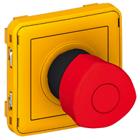 Plexo vuistknop voor noodonderbreking - 3 A - 250 V - grijs met gele kap/rode knop - IP 55 - impulsdrukknop voor uitschakeling - NG contact