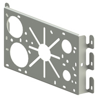 Console voor bevestiging van een verdeeldoos. Deze montageplaat CM50XXL UE (Sendzimir verzinkt) is schroefloos te bevestigen op de draadgoot.
