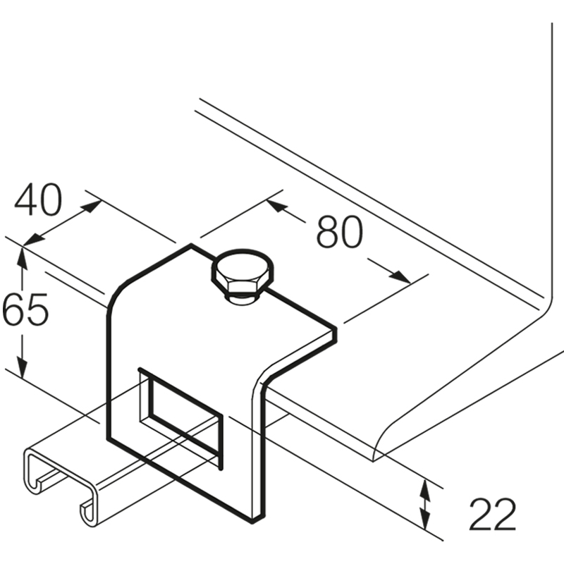 Bevestigingsbeugel spanplaat Thvz incl. bout en moer, excl. U-draadbeugel. Profiel schuift door beugel. Bevestiging middels klemring.