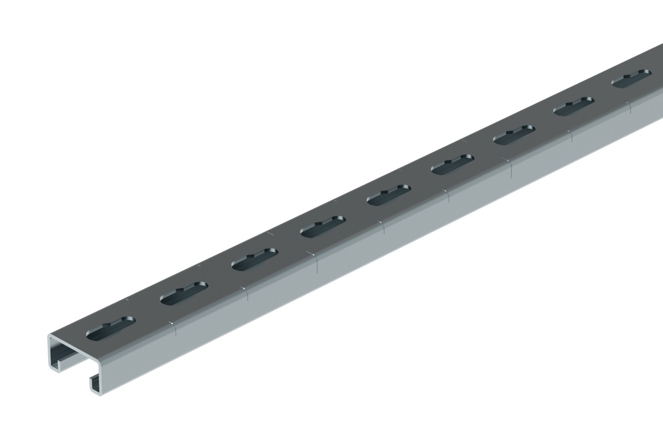 Rail strut R21S, (BxHxD) 41x21x2,0 L3000 Zink Magnesium (ZnMg), C-profiel enkel, rug geperforeerd met sleufgaten